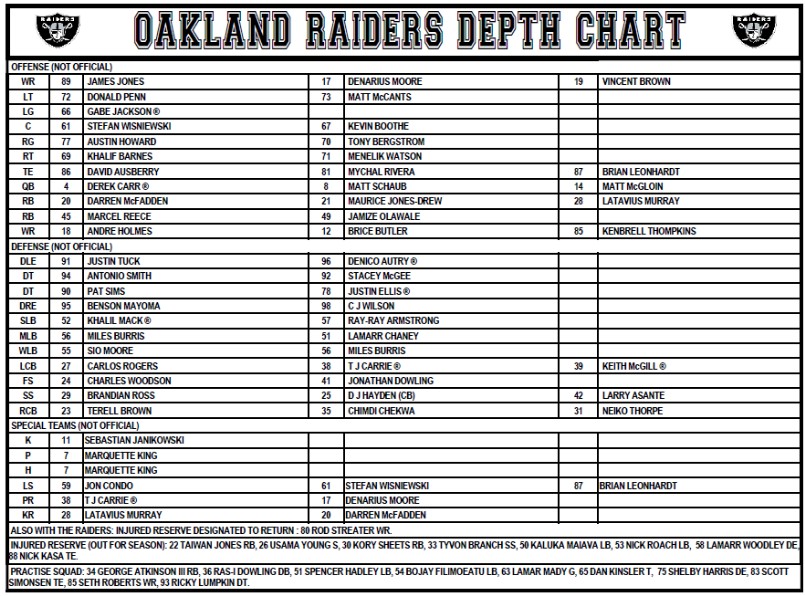 OAKLAND RAIDERS 2014 DEPTH CHART