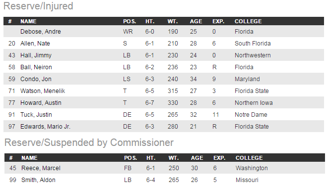 2015 OAKLAND RAIDERS INJURED RESERVE